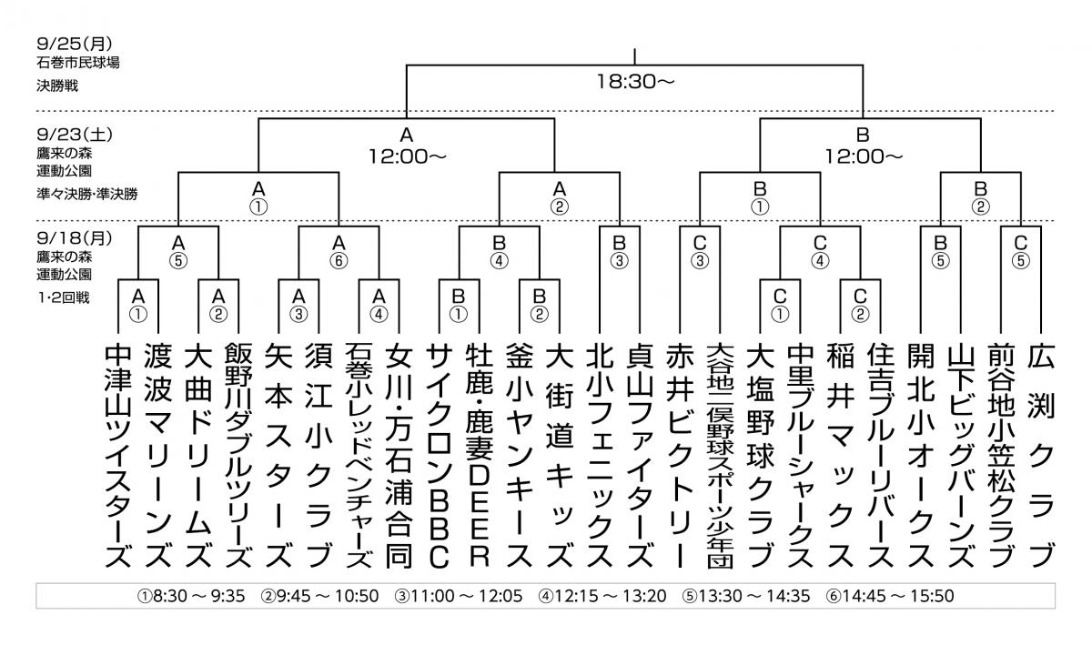 18日に開幕する「第19回石日杯争奪秋季新人少年野球大会」(石巻日日新聞社主催)の初戦組み合わせが決定した。
