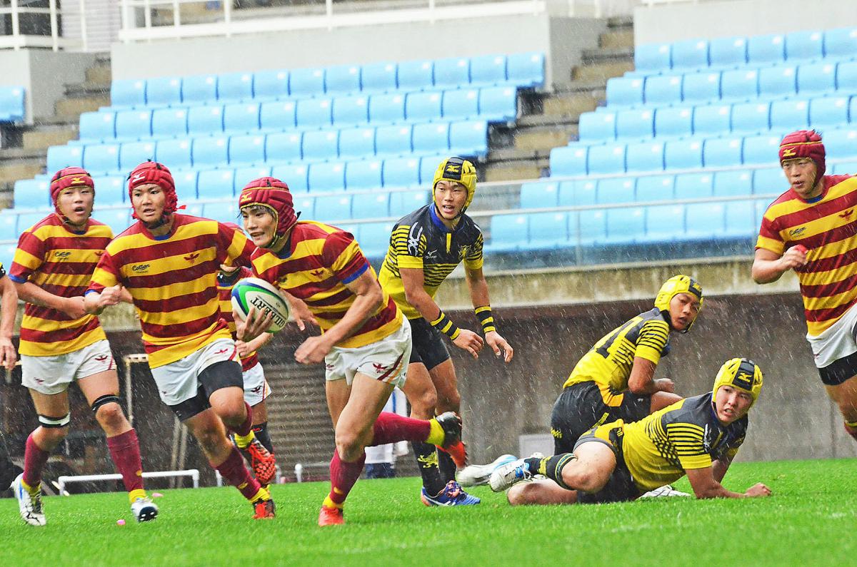 降りしきる雨の中、ノーサイドまで果敢に攻める石巻工
