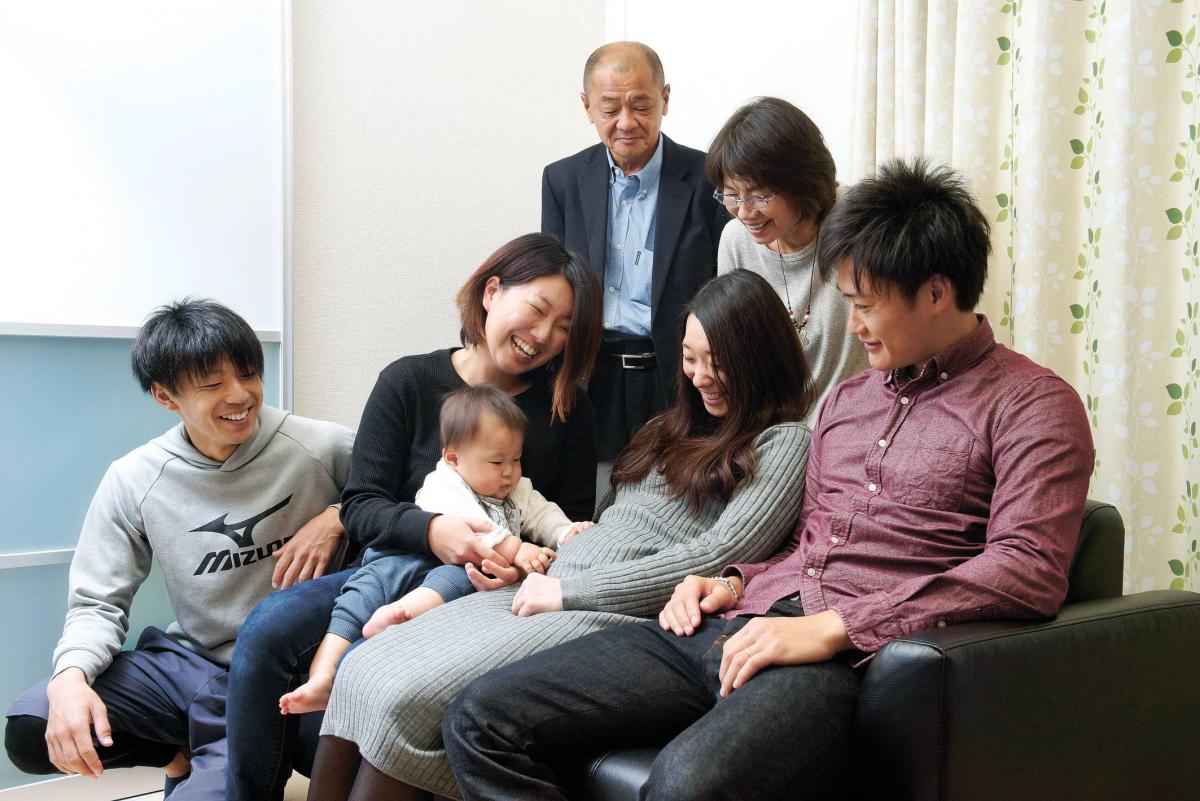 両親と友人家族に見守られ、嶺岸夫妻(右下の2人)は生まれてくる子どもにも人のつながりの中で元気に生きることを望んでいた
