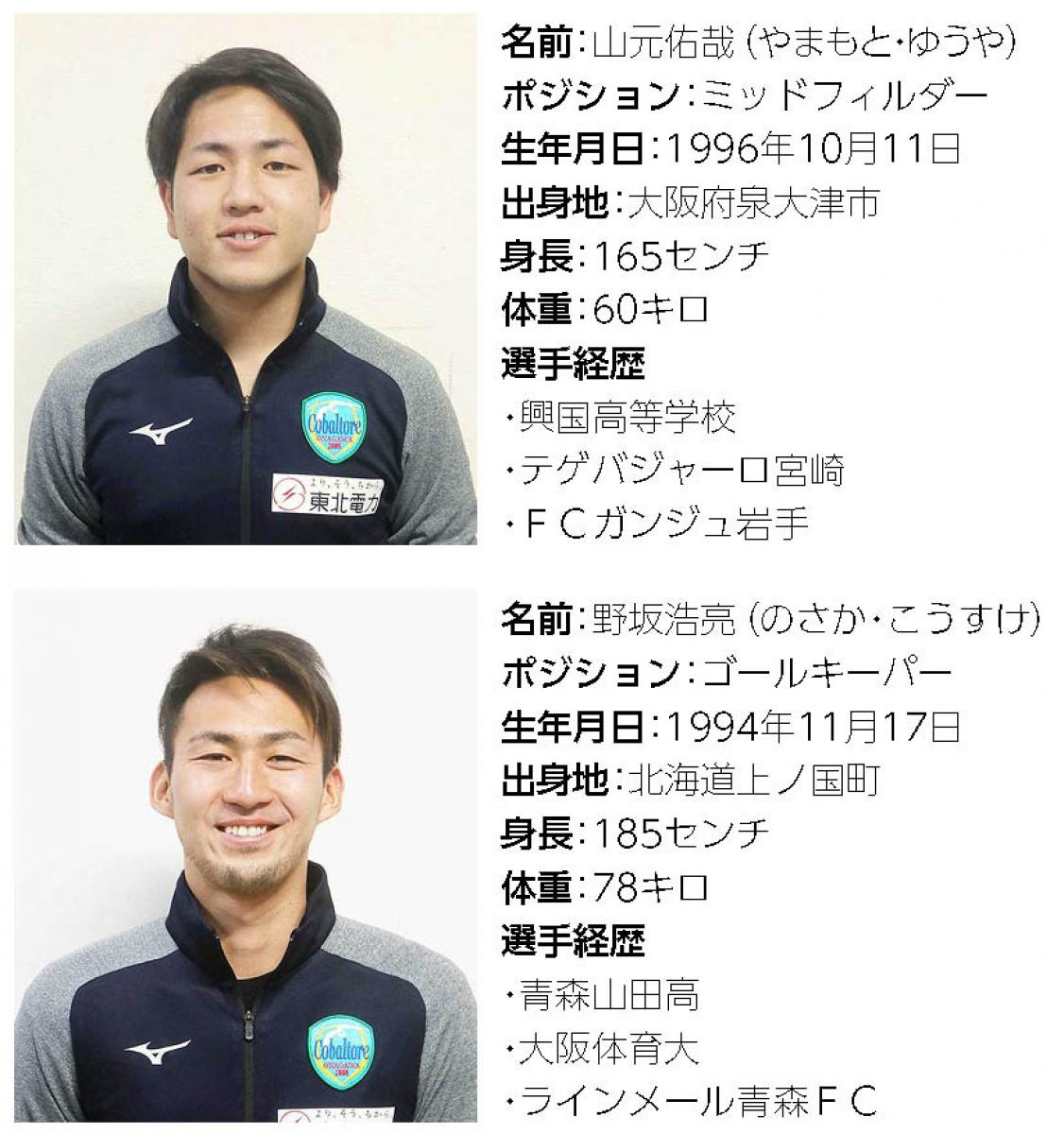 女川町 スポーツ 石森 洋史 2020年1月21日(火) 9時03分新年を迎え、コバルトーレ女川は東北社会人サッカーリーグ1部の開幕に向けて本格的なトレーニングを開始した。日本フットボールリーグ(JFL)昇格を目標に掲げた昨シーズンは、リーグ戦3位という結果となり昇格チームを決める「全国地域サッカーチャンピオンズリーグ」(全国地域SCL)への出場もかなわなかった。JFLへの復帰をかけた2年目となる2020シーズン。阿部裕二監督を中心にチームの補強が進み、現在、6人の新加入選手が発表されている。今回はこのうちチームに合流した選手のインタビューを掲載。JFL昇格に向けた頼もしい攻撃と守備の新戦力だ。